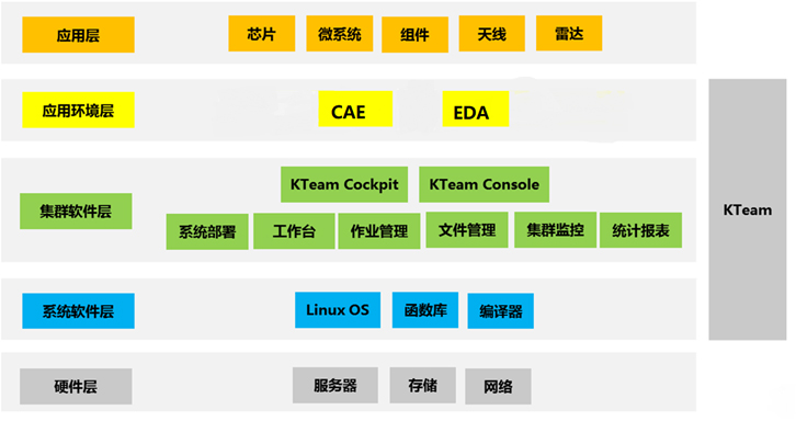 KTeam是基爾科技自主研發(fā)的高性能協(xié)同設計仿真軟件平臺,可實現(xiàn)設計與計算集群資源統(tǒng)一部署、使用、瀏覽、管理、監(jiān)控和統(tǒng)計等,可大幅提高仿真效率,簡化平臺管理。KTeam由應用工作臺、作業(yè)調(diào)度模塊、文件管理模塊、集群監(jiān)控模塊、資源統(tǒng)計模塊組成。選用KTeam及其相關服務,可以幫助用戶部署操作系統(tǒng),安裝和測試集群軟件以及應用環(huán)境,基于高性能集群硬件設備,提供傳統(tǒng)的設計環(huán)境和高速的仿真體驗。